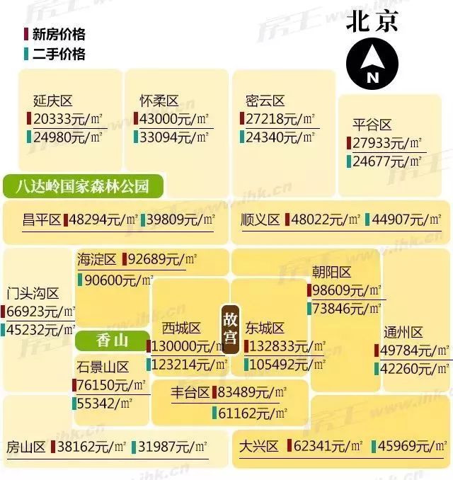 18座城市中,14个城市房价上涨,只有深圳、南京、天津及长沙四个城市房价微跌。其中首都北京稳坐较高房价宝座,7月新房均价64262元/㎡。