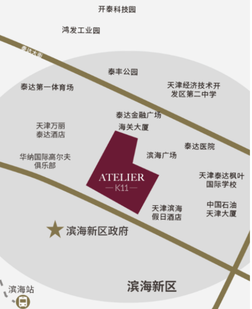 K11 ATELIER区位优势明显,雄踞京津1小时经济圈。它坐落于天津市滨海新区新城西路与排名前列大街的交汇处,交通便捷,紧邻津滨轻轨9号线市民广场站,40分钟可达市区,规划中的ZI线竣工后将与项目无缝对接,京津高铁1小时可直达北京,地理优势无可比拟。