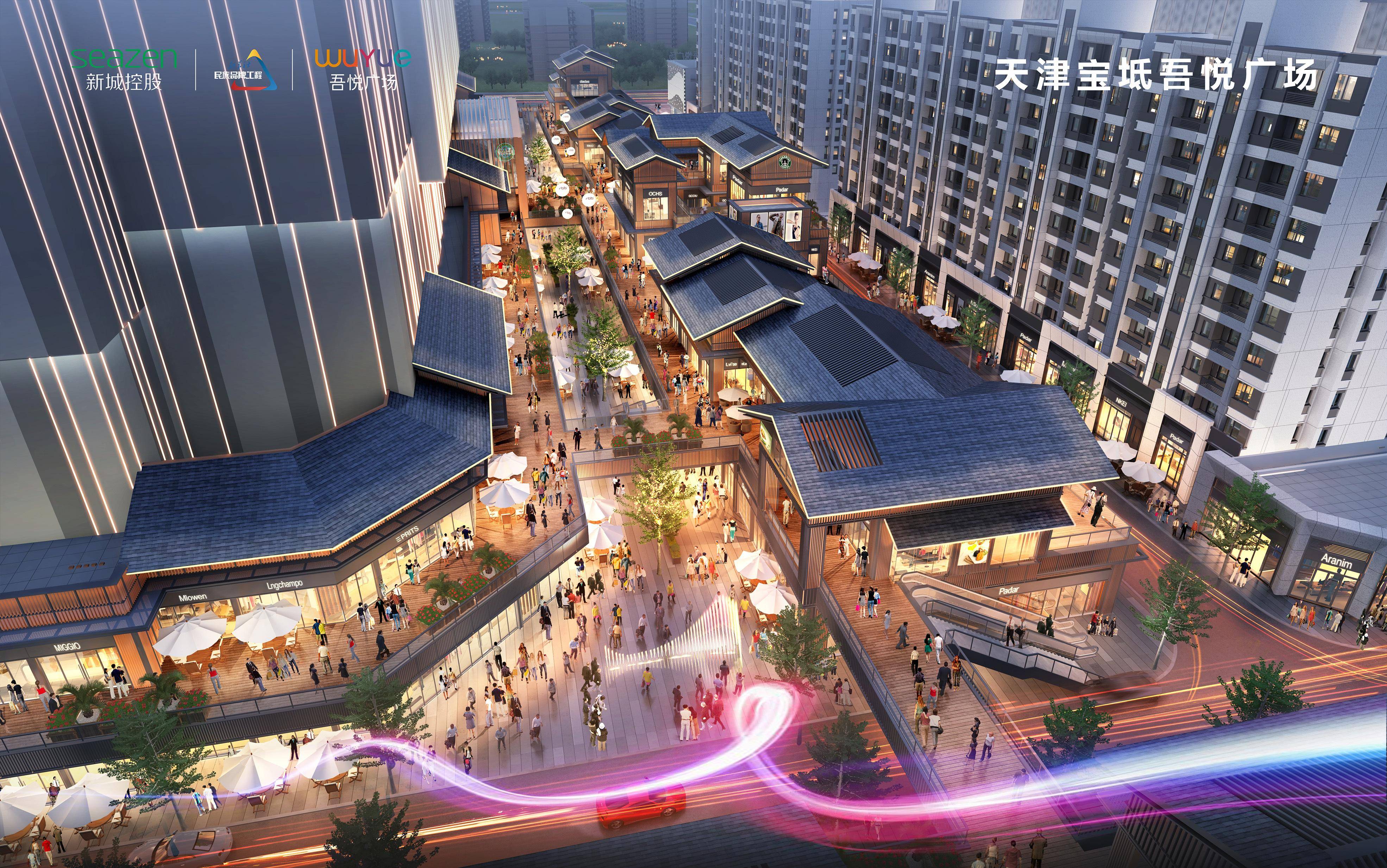 天津宝坻吾悦广场结合宝坻“如坻如京”的丰收寓意,以及人文与历史文化资源,打造城市地标,展示区域特色风貌,整体街区通过文化与商业的结合,打造宝坻文化特色的人文体验街区,搭配当地 “京东大鼓”“评剧”“秦城遗迹”等文化元素,设置特色小品装饰,打造宝坻新晋网红打卡地。。