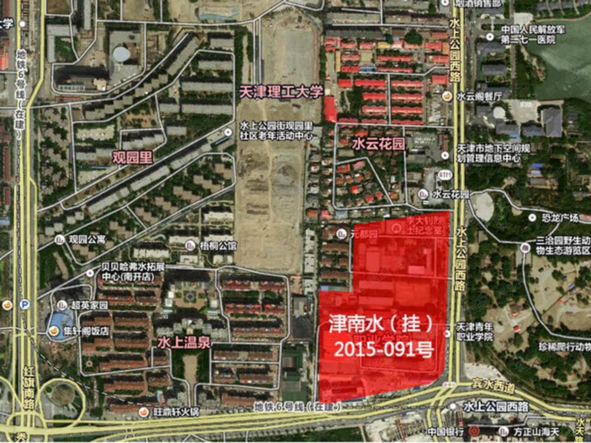 天房水上西路地块位于位于南开区水上西路西侧,其四至为:东至水上西路,南至市委印刷厂,西至元都园、成业路,北至水云花园。水上西路地块土地面积为52502.7平方米,含居住用地49300平方米,商业金融用地29300平方米,规划用地性质为城镇住宅、商服,规划总建筑面积不大于78600平方米,楼面单价约16539元/平方米。