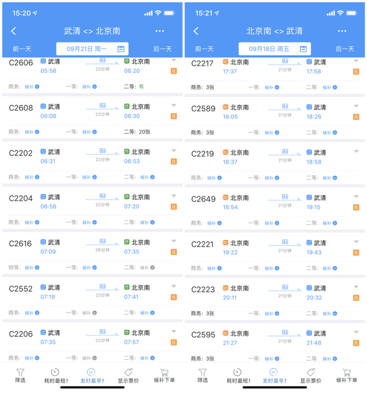 虽然周二到周四的车票很容易买到,但周一早上从武清站到北京南站,以及周五下午从北京南站到武清站的票有多难买?从八阿哥了解到的信息来看,可参考春运……