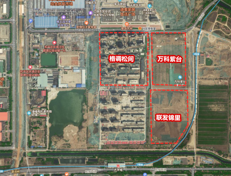 再如地铁3号线大学城站北侧的格调松间、万科紫台、联发锦里,三者相邻,但房价差距明显。