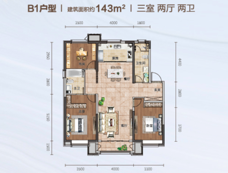 建面约143㎡阔景三居