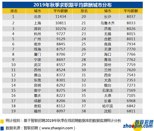 最近,智联招聘发布《2019年秋季中国雇主需求与白领人才供给报告》,报告中公布了2019年秋季较新平均薪酬,数据显示,全国38个主要城市的平均招聘月薪为8698元,环比上升2.9%,同比涨幅10.8%。