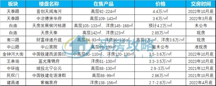 天泰路和白庙板块楼盘几乎没有百平米以下户型,买房门槛大约要400万上下,明显偏向于改善,选择该预算的客户,如果不是周边原住民,大多数会优选河西、南开等区域。