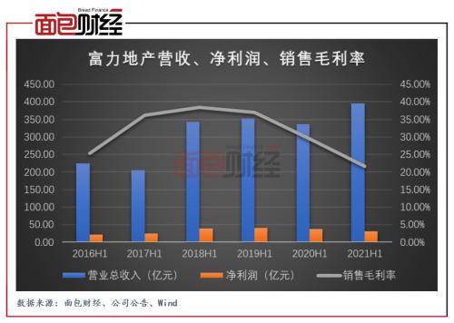 由于物业交付面积增多,公司2021年上半年营收较去年同期增加18%至394.9亿元。但交付的物业大部分集中于均价较低的二线及三线城市,且公司采取低价促销营销策略,导致公司当期综合毛利率较去年同期下降7.85个百分点至21.7%、净利润同比下降18.78%至30.8亿元。