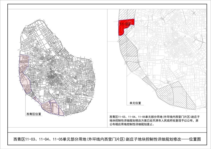 2020年12月31日,天津市规划和自然资源局发布《(西青区)关于公布西青区11-03、11-04、11-05单元部分用地(外环线内西营门片区)赵庄子地块控制性详细规划修改方案》的通知,显示超17万平米宅地将调整。