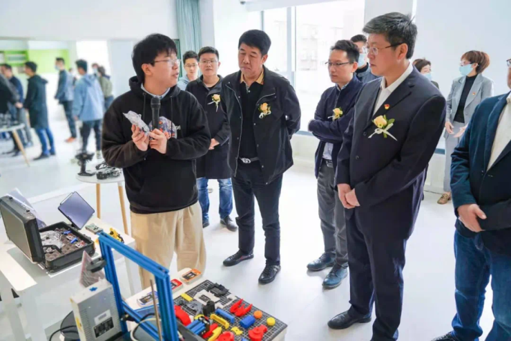 随后,各位领导跟随融创工作人员前往融创华北携手玄智科技联手打造社区里的科技教育课堂——【新知空间】,在专业技术人员的介绍下,详细了解科技教育的有关情况。