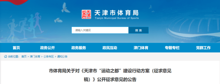 为努力把天津建设成为国际化“运动之都”,天津市体育局经过前期与各有关部门共同研究、面向全社会首次征求意见,形成《天津市“运动之都”建设行动方案(征求意见稿)》(以下简称《征求意见稿》)。为进一步提升方案质量,近日,再次面向社会公开征求意见。
