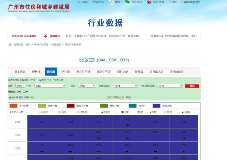 记者查询广州市住建局房地产项目信息系统发现,凤鸣山项目部分取得预售证的楼栋房源处于强制冻结状态。