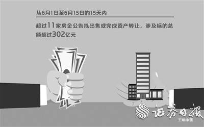 6月份以来,先是千亿元房企建业地产拟引入河南铁建为战投,紧接着中国金茂拟以较高25.65亿港元的代价将上市公司中国宏泰私有化,再有阳光城48亿元出售项目。据《证券日报》记者不完全统计,从6月1日至6月15日的15天内,超过11家房企公告拟出售或完成资产转让,涉及标的总额超过302亿元。