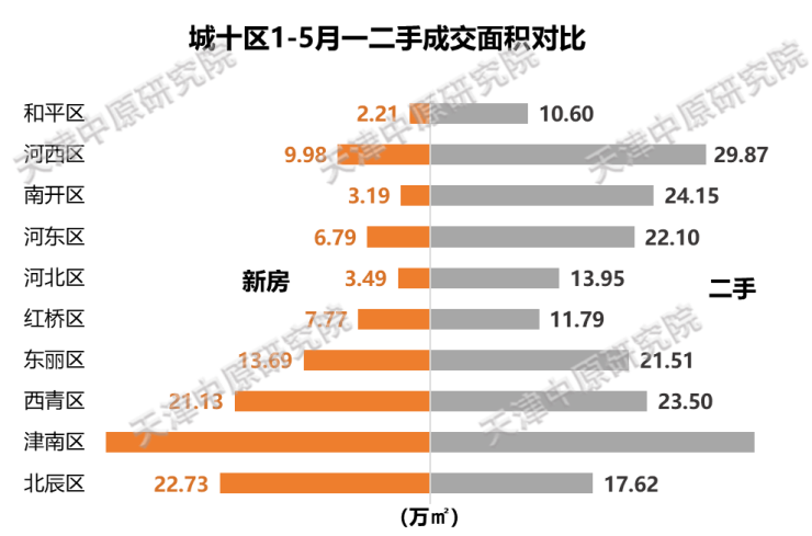 河西区一二手房市场成交均较为健康,新房前5月成交金额位列城十区第三位,二手房位列排名前列位;以人民公园板块为核心的二手房市场和以新梅江为核心的新房市场表现良好。