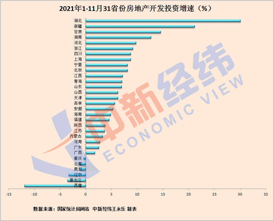 近日,国家统计局发布2021年1-11月31省份房地产开发投资数据。数据显示,今年前11个月,广东、江苏、浙江投资额均超万亿,15省份增速跑赢全国,湖北以全国增速的5倍领跑。