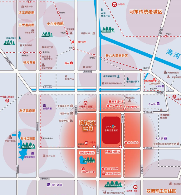 中交海河公馆位于天津南开区老城厢板块,南开区属于天津市内六区的上三区,老城厢板块亦是聚集了天津最早一批高端住宅的“宝地”,板块内高端项目云集。