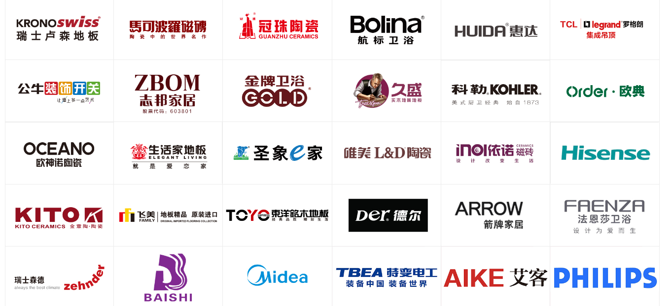 品牌环节,承诺全屋所用主辅材均为全球甄选优质品牌,业主可不加钱就享受全一线品牌材料的待遇。从瑞士卢森地板、马克波罗磁砖、惠达卫浴、特变电工、金牛开关,到多乐士、日丰、雨虹,以F2C模式从工厂直接送到您家,没有任何中间利润,这就是业主能以最优惠价格享受到较具品质家装建材的原因。