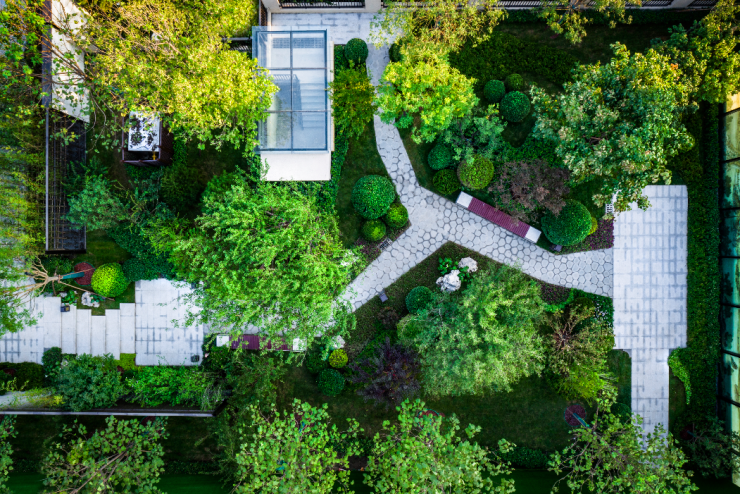 摆石、建筑小品与叠山技艺,极质匠心的造园手法,在舒缓处起起伏伏,营造变化流动的行走空间,获得深邃致远的景观园林意境。不同植被搭配带来的视觉空间维度上的延伸,叶子随季节更迭,唤起的时间维度上的演绎,与穿插其中的鸟类昆虫、弥散开来的花香,共同构筑一幅宁静诗意、返璞归真的生态画卷。