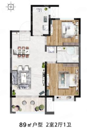 89平米户型为经典“H”型标准户型,南向两开间,客厅开间3.7米,阳台进深1.7米;该户型主要针对具有强烈的学区房需求的买房人,中小户型对总价要求较低,获得学区资格的同时较大化减小经济压力。