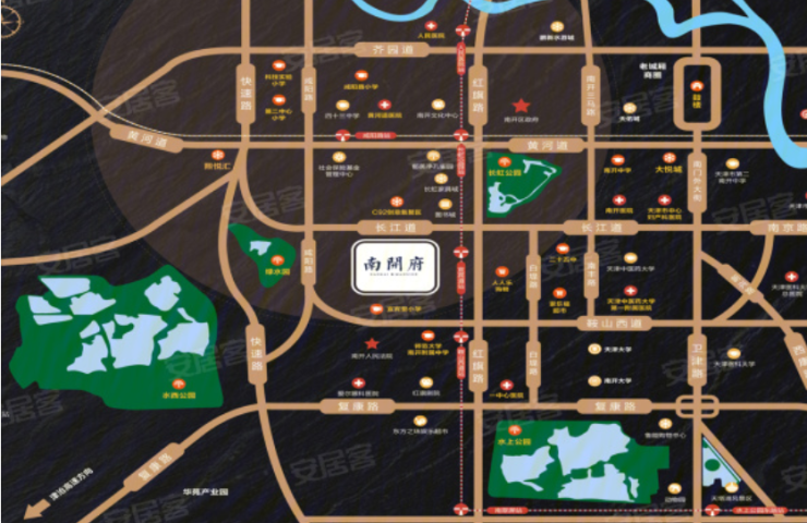 南开府项目坐落在长江道51号,项目占据了得天独厚的地理位置,周边配套十分完善,该地段还位于南开区政府重点打造的西营门新城区域。