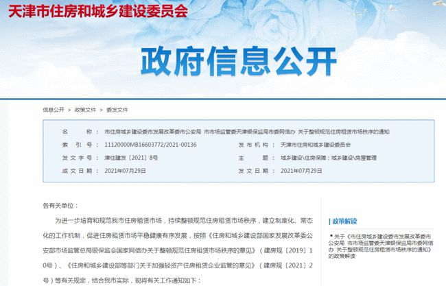 市住房城乡建设委市发展改革委市公安局 市市场监管委天津银保监局市委网信办 关于整顿规范住房租赁市场秩序的通知