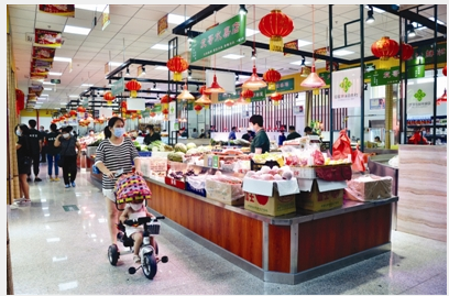 果蔬柜台360度环绕展示、鲜肉冷冻专业化科学分区,坐落于津南区双桥河镇、占地1700多平方米的供销万家信和园菜市场里,前来采购的友和园小区居民丁玉英拎着刚刚购买的蔬菜和鲜肉,开心地说:“以前要骑车到别处的菜市场买东西,既远又不好找。这个菜市场营业后,我只用5分多钟就到了,干净卫生,菜品齐全,价格也实惠。”