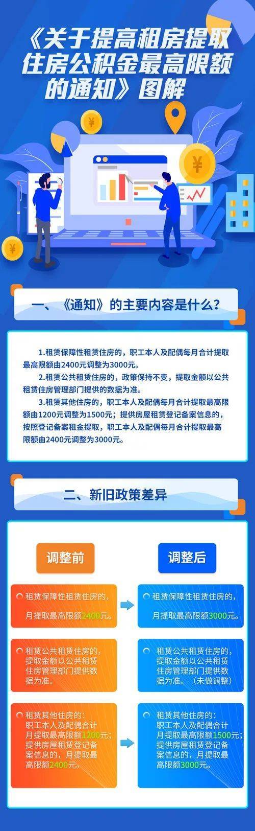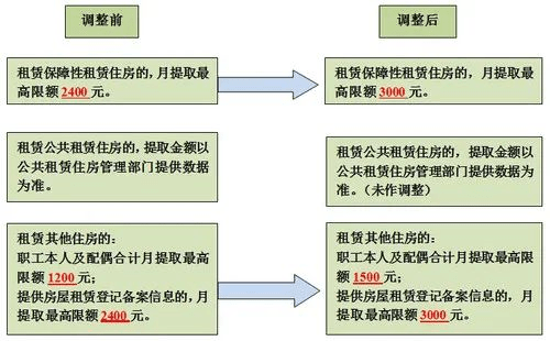 1.租赁保障性租赁住房的,职工本人及配偶每月合计提取较高限额由2400元调整为3000元。