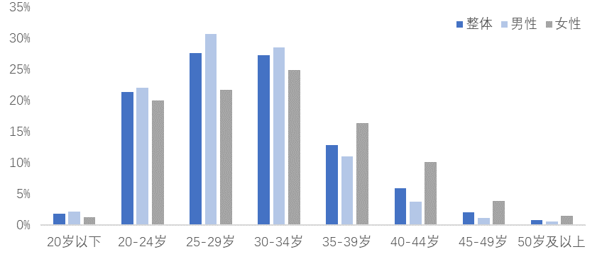 中国房产经纪从业群体整体较为年轻,调查数据显示,40岁以下占比91.1%,其中90后占比过半,已成为行业中坚力量。分性别看,女性经纪从业者年龄普遍稍高,35岁及以上占比32%,高出同年龄段男性群体15.5个百分点。