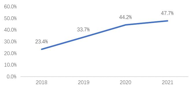 经纪人留存率逐年提升。随着经纪行业向好发展,经纪人的从业时长呈现出逐年上升趋势,调研数据显示,2021年从业年限超过1年的经纪人占比相较2020年增加超10个百分点。
