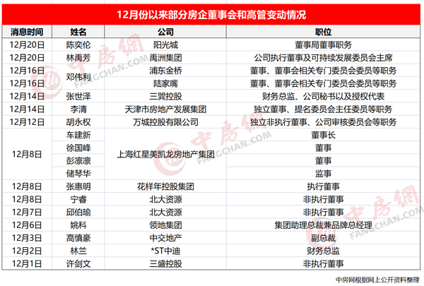 据中房网不完全统计,12月份以来,至少就有14家房企的董事会和高管层发生了变动。