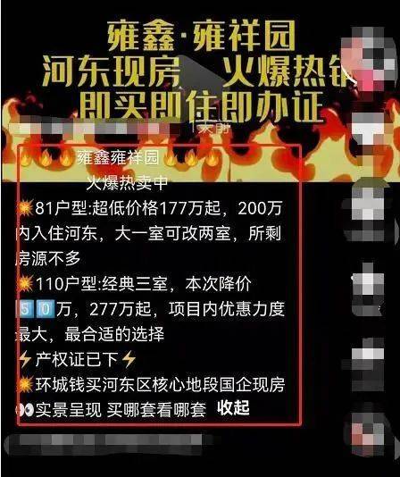 河东的雍鑫雍祥园,81平米户型177万起,110平米户型277万起;