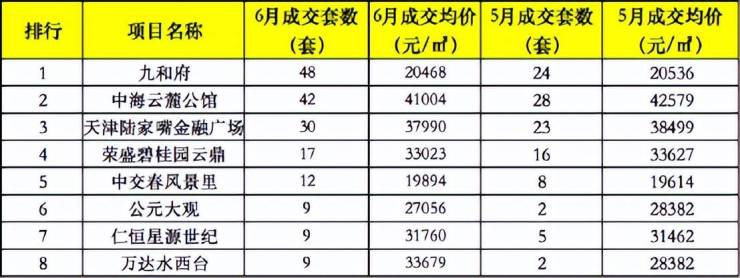 整体看下来,南开区单价高的盘6月卖的都比5月好,高价盘销量高了,自然会带动价格上涨。