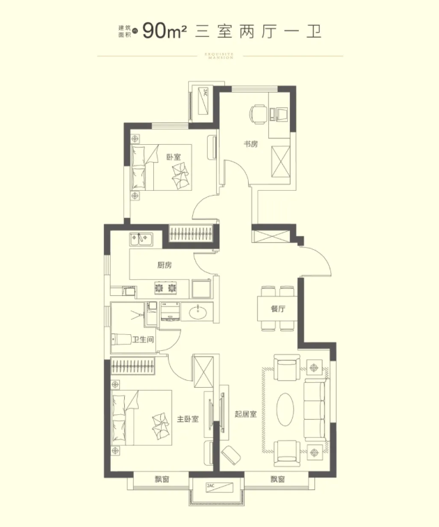 该项目洋房共有两款户型,建面约90、115平米;首开只开建面约90平米户型,为三室。