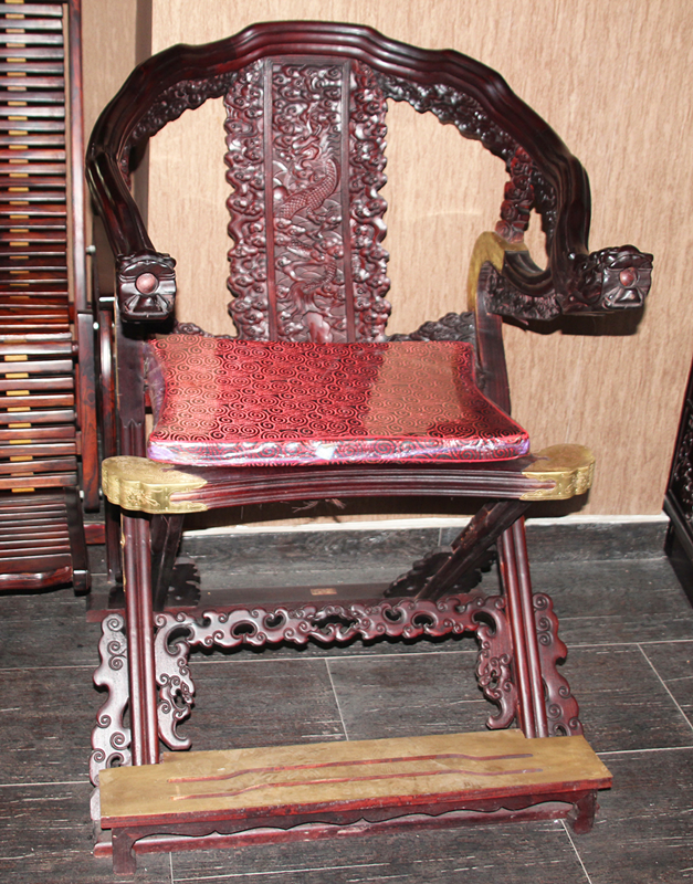 皇宫椅的制作要求较为严格,必须全部榫接结构,环环相扣。雕刻部分要求精美而不影响人体的舒适需要,让人端坐其上,尽显主人"内圣外王"的非凡气度。