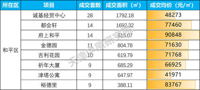 4月天津二手房成交top100排行榜 市区刚改为主流