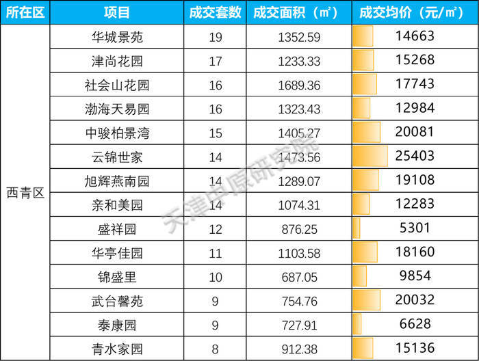 以下就4月份天津市成交热点社区成交量价进行盘点: