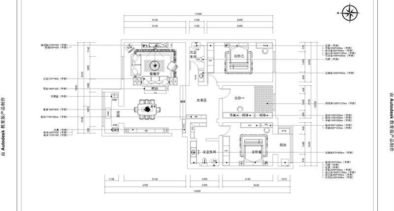 由于客厅跟餐厅同处于一个空间中,所以把该空间一分为二,形成客餐厅的格局。在客厅沙发的背后建了个吧台,把两空间很好的划分开,并且吧台采用板材定制上面铺上大理石,整体颜色为白色,增大客餐厅的亮度,解决光照不足的情况。