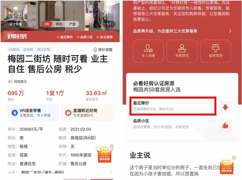 张平(化名)是梅园片区一家房产经纪门店的经纪人,他对中新经纬表示,这段时间的房价有所下降,比如,对口双学区的一居室,此前的售价都在700多万元,现在有一套已经降到660万元。“3月上旬,这套房子还是700多万,我们跟房东说报价太高,不好卖,房东也诚心出售,就谈下来了。”梅园六街坊对口前述三所学校,即便是拥有这种房源的业主,也选择下调报价。张平称,他们特别签了六街坊的一套双南、中间楼层的两居室,面积约52平方米,目前报价808万元,3月份这套房源的挂牌价还是920万元、910万元。而且,价格还能再谈。降价这么多,是不是房源有瑕疵?张平说:“我保证,这套房没有产权上的瑕疵,产证、户口都有看的。这个小区还有一套51平方米、866万元的房子,我为什么不推荐这套,肯定是选择性价比高的房源给客户。”张平经常在朋友圈发布公司的房源信息,从最近一个月发布的信息看,不时会有“高性价比”“房东急卖”“手慢无”等字样。李铭(化名)也是梅园片区的房产经纪人,对于当前片区内的市场状况,他说:“现在是谁松动了就先卖谁的,你看三学区的两房,还有挂920万、930万的,但不好卖呀。我们3月中旬成交了一套905万的两居,现在同户型的呢,实际成交价在820万、830万。目前是一个僵持状态,房东也不降,客户也不买,成交量就下来了。”“我们能成交的(房源),是房东稍微降一点的,也不说降很多,至少降到2020年10月份的水平,相当于今年没涨吧。”李铭说。上海闵行区的春申板块,是一个房龄较新、且有学区加持的区域,房产经纪人孙惠(化名)介绍称,2020年该片区两居室的学区房价格从500多万元上涨至800多万元。中新经纬在房产交易平台看到,春申景城湖滨晨韵小区一套85平方米两居室的挂牌价为857万元,孙惠称,今年春节的时候,业主的挂牌价是899万元,后来他们跟业主商量后,下调至857万。“这套房子还有议价空间,就看能议多少。对比小区同户型房源,目前有一套挂牌价839万元的,比之前降了差不多20万元。”孙惠说。调控频发,学区房能降温吗?