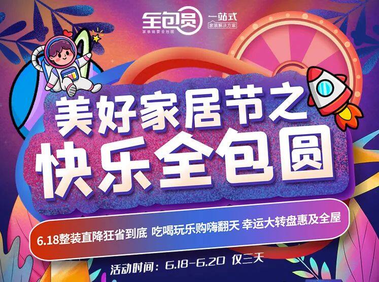 一起来看看今年的全包圆,又有什么不一样的618活动?据了解,6月18日至6月20日期间,在全包圆下单,爆款样板间直降500/平米起,每天秒杀18套特惠样板间,直省一半装修费;不仅如此,还有超级“省钱三大招”:7包7免6不限,送家电抽大奖等优惠省钱豪礼,幸运大转盘100%中奖,抽中即送空气炸锅、电磁炉、微波炉、电烤箱等千万家电。