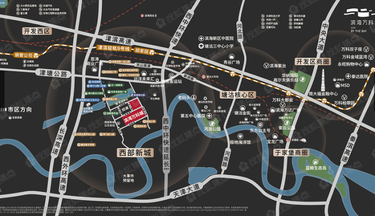 项目属于南站板块,依托天津南站的交通枢纽作用,地铁和高铁的双重轮动拉近了与北京、天津市区的物理距离。