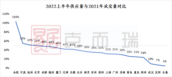 从上图22城的2022年土地供应量与2021年成交量对比来看,仅合肥比值超过100%,合肥今年土地市场进入高热,两次集中土拍溢价率分别达到了11.2%和7.9%。