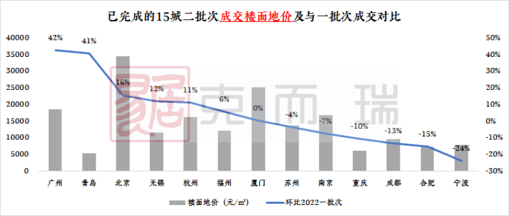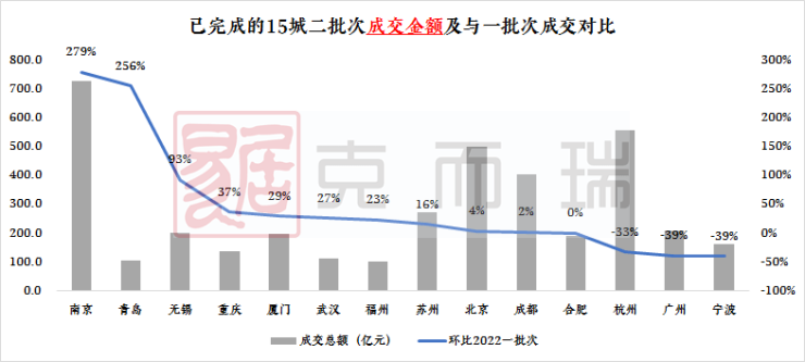 22城截至日前,共有15个城市已经完成二批次集中拍地,约10个城市二批次成交量和土地出让金整体较首批次有所增长。