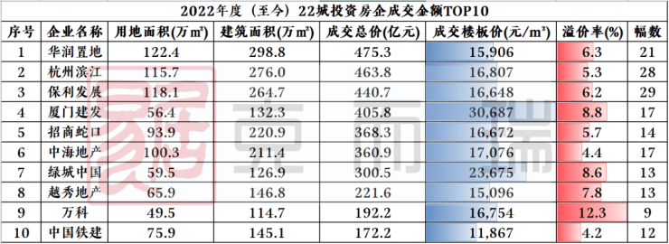 从投资前十的房企来看,万科、厦门建发、绿城等房企上半年投资较为积极,更意愿加大投资获得地块,厦门建发和绿城摘得的地块相对更集中在核心区域。