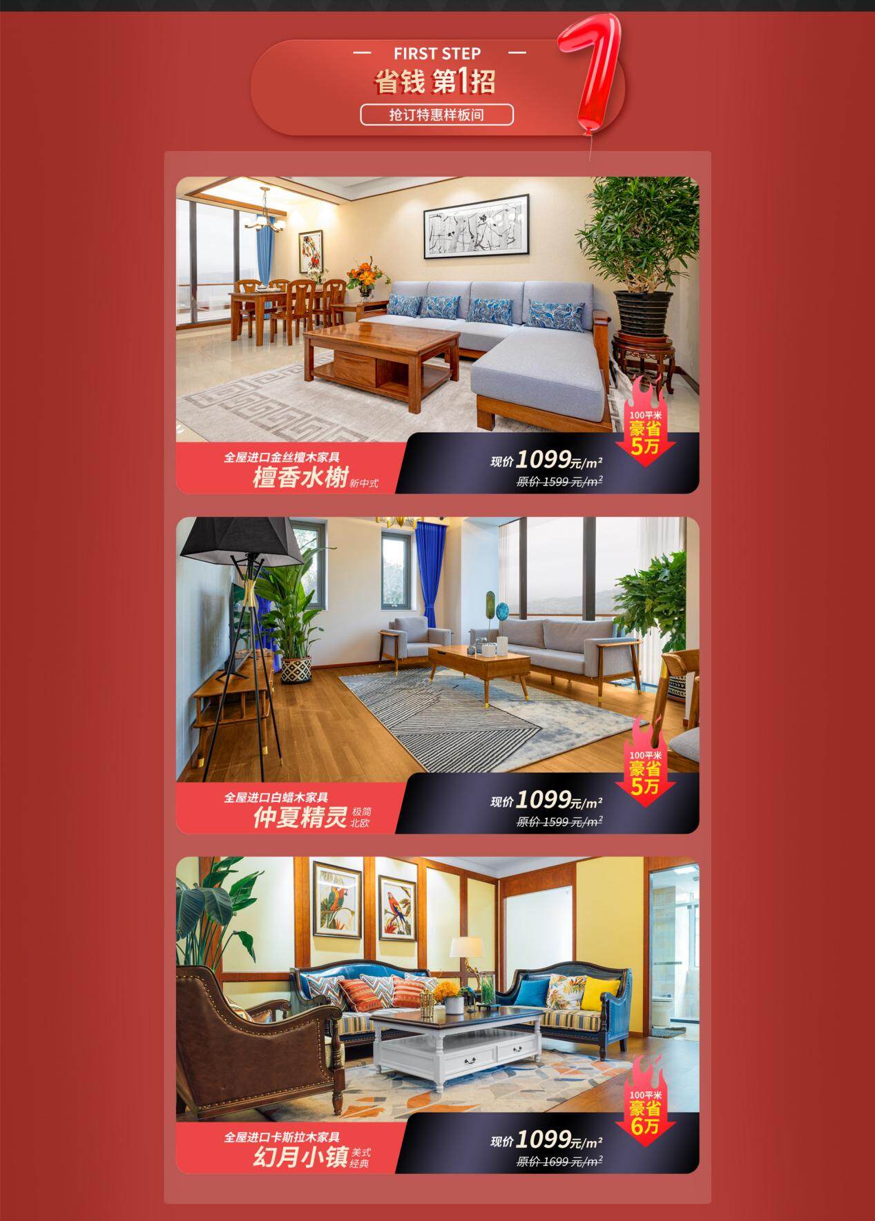 全包圆样板房中,檀香水榭(新中式)、仲夏精灵(极简北欧)、幻月小镇(美式经典)是颇受消费者钟情的三款高品质整装。为回馈新老消费者,全包圆推出此三款的“特价装修款”,即装修品质不变,但可享抄底价供应,原价1599 元/m²的檀香水榭、仲夏精灵及原价1699 元/m²的幻月小镇,现价均为1099 元/m²“特供”,且分别赠送全屋进口白蜡木家具、全屋进口白橡木家具和全屋进口卡斯拉木家具,惊喜不惊喜?意外不意外?