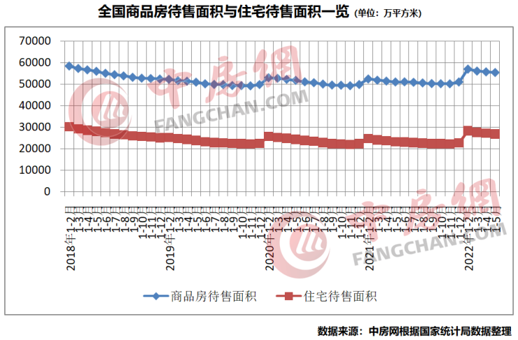 数据显示,1-5月份,商品房销售面积50738万平方米,同比下降23.6%;其中,住宅销售面积下降28.1%。商品房销售额48337亿元,下降31.5%;其中,住宅销售额下降34.5%。