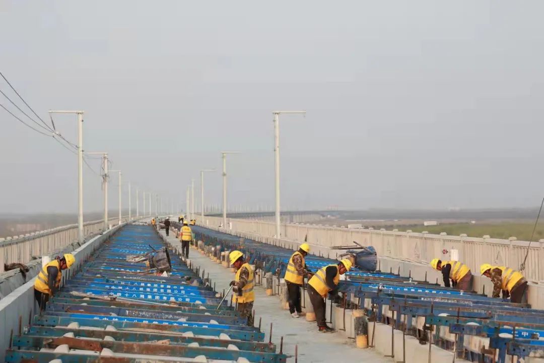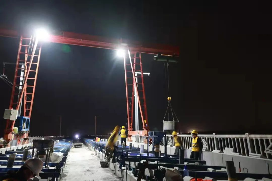 据介绍,北辰特大桥长达31.74公里,5次上跨高速公路,跨越10条河道,无砟轨道铺设面临点多面广、材料供应难、作业空间受限、交叉作业多等诸多困难。对此,中铁十八局集团施工团队坚持党员带班,不断优化施工方案,较规定工期提前8天完成了无砟轨道施工任务。