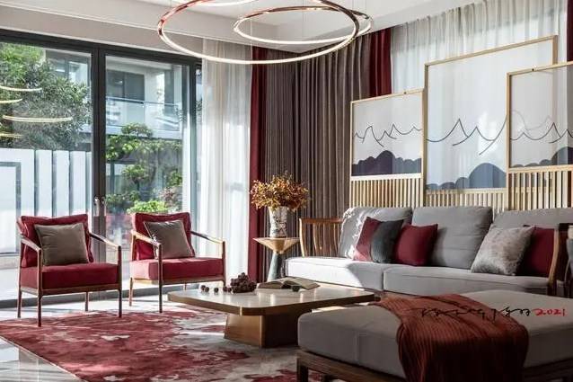 最后,装饰设计多用简洁线条。简洁的直线条装饰,反映出人们对于简洁生活理念的追求,将现代人们的生活理念转化并融合到室内设计中。保留中式家具的内敛和质朴,加入现代家具的实用性和现代感,使得人们在满足中式文化韵味的同时也实现对于现代生活的追求。