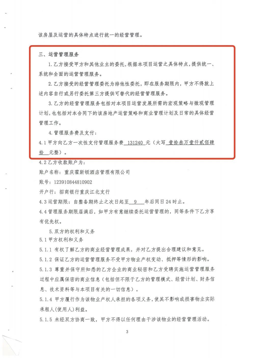 按照该项目的商业经营模式,徐鹏先后与西安华采投资管理合伙企业(有限公司)(下称西安华采)和重庆霍斯顿酒店管理有限公司(下称霍斯顿酒店)分别签订了购房合同以及不动产运营管理服务合同。