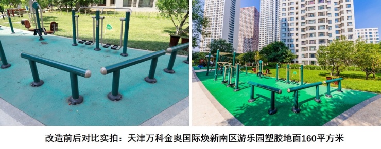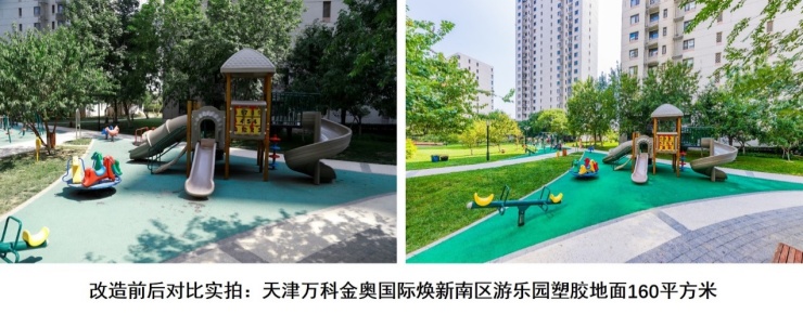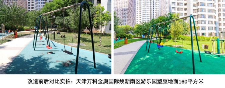金奥国际是2011年交付入住的老小区,去年万科出资主要对南区停车桥车场地面进行了修缮,今年主要是南区破损游乐园塑胶地面整体翻新160平方米。