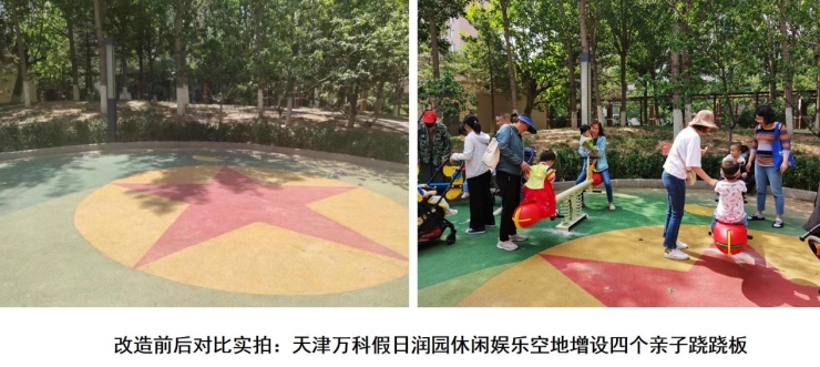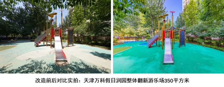 再来看假日润园的焕新成果,业主李素卿在今年四月份美丽社区启动仪式上说,一住就是一家人要住上几十年,小区能不能保持住品质,很重要。她说润园邻居们经常一起参加物业组织的社区文化活动,邻里和谐,住得暖心。万科物业平时为小区做的小改小修也是细水长流一直在做,至于花费较大的改造,万科地产每年也都会出资来做。去年天津万科美丽社区行动,为小区做了中轴修复和儿童游乐区的改造提升、朗润园南、北大门的改造提升、排水管改造以及盈润园阳光房廊架和自行车棚的改造。今年小区重新粉刷了园区大堂、整体翻新了老旧破损游乐场,还通过友邻市集展卖活动成功募集资金为小区增加了四个跷跷板。