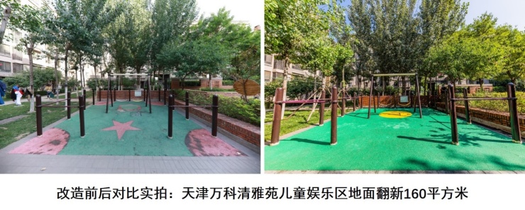 这些焕新改变都源自今年4月在天津全城启动的“万科与业主共建美丽社区行动”,希望通过万科地产、万科物业、业主等多方联手破解老小区维修资金不足的难题,探索老小区更新治理的共筹共建可持续模式。主要涉及楼体外墙、园区路面、儿童娱乐设施、地下车库、监控设备、照明设施、绿化补种、景观水系等改造升级,让社区重新焕发生机,为业主提供更加舒适的居住环境,也让老小区“逆生长”不断拉升保值增值空间。小区改造施工项的拟定,充分听取业主意见和建议,多次通过线上和线下多种方式开展业主问卷调研。