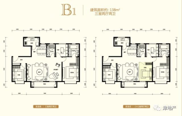 第三种,与同等面积户型相比,兼备客厅MAX、对卧室数量需求多的两种优势,开间超过6米,可在原基础上实现功能扩充,再改造。比较典型的包括正荣府125平米三室户型、联发红郡135平米三室户型以及紫金府的138平米三室户型,可以在三室基础上改造成四室,但客厅开间被“打回原形”,不过改造后的客厅开间也能保证4米,不会影响居住舒适度。